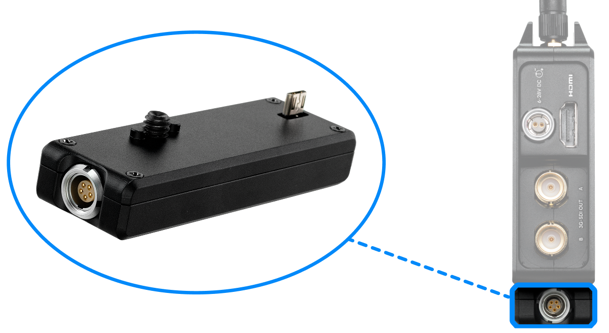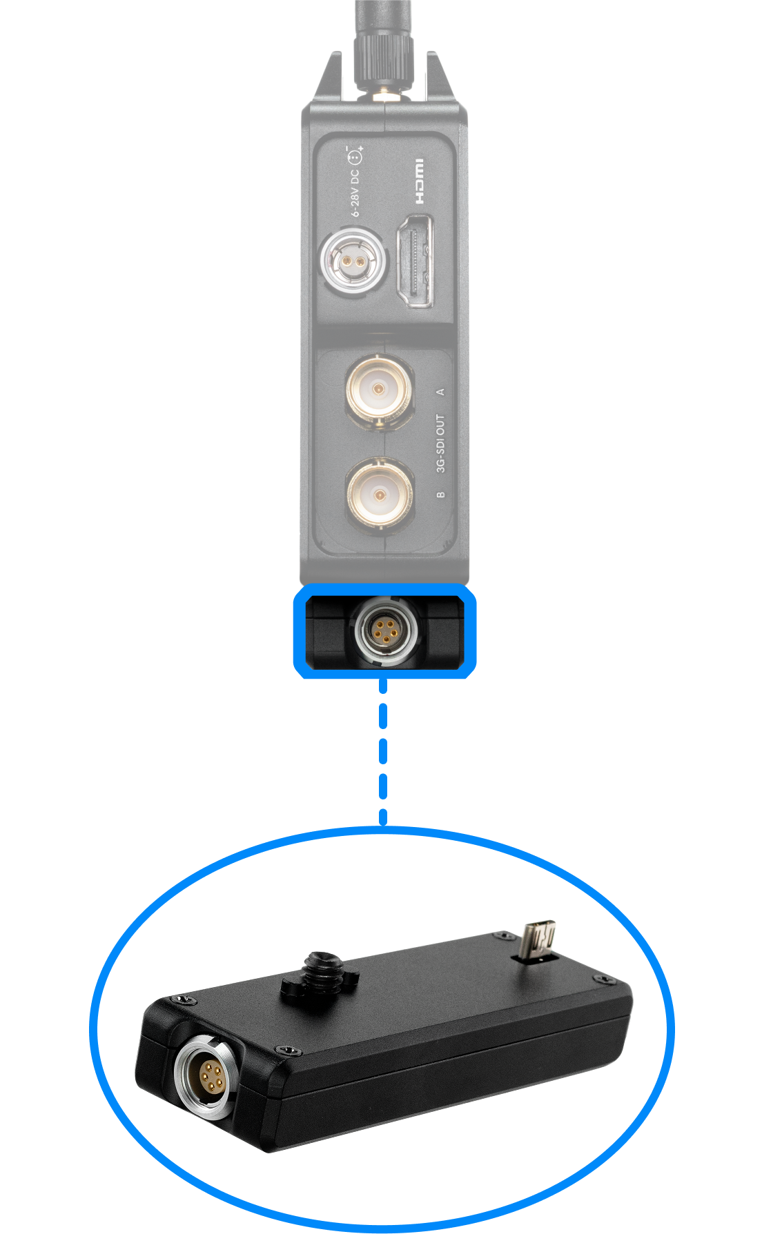 You can now use a similar workflow for wireless camera control with the Bolt 4K transmitters and receivers that you already own. The main difference is adding the USB adaptors and a few cables to your setup to ensure all your hardware devices can properly interface. Once your hardware is connected, you’ll again install a single camera control license on either your on-camera Smart monitor or your receiving Smart monitor. Once the license is installed, you can update settings on your receiver-side monitor, which will send the commands back to the transmitter, forwarding the command to the camera.