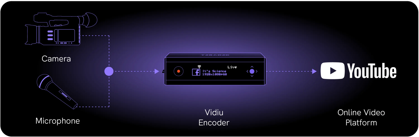 If your church is interested in improving the picture quality by using a camera or camcorder instead, consider using a dedicated streaming device such as our slim, lightweight, and portable Vidiu X or Vidiu Go encoders. Encoders allow you to stream directly from your camera to the platform of your choice. These devices can be mounted on top of your camera and be set up and controlled from a mobile device for a portable and powerful setup.