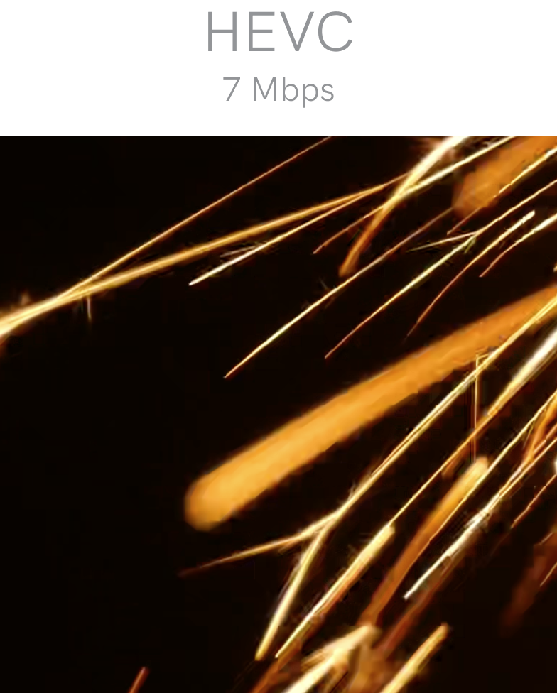 Now that we’ve identified the right bitrate, let’s compare these side-by-side stills of the HEVC and AVC. Pay particular attention to the large spark these frames are zoomed in on.