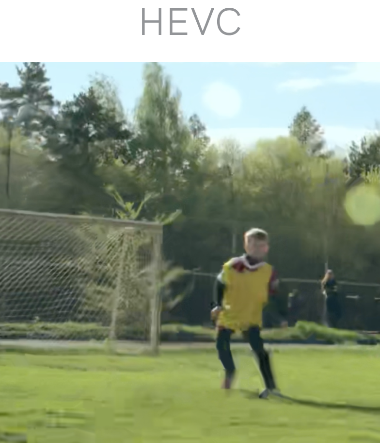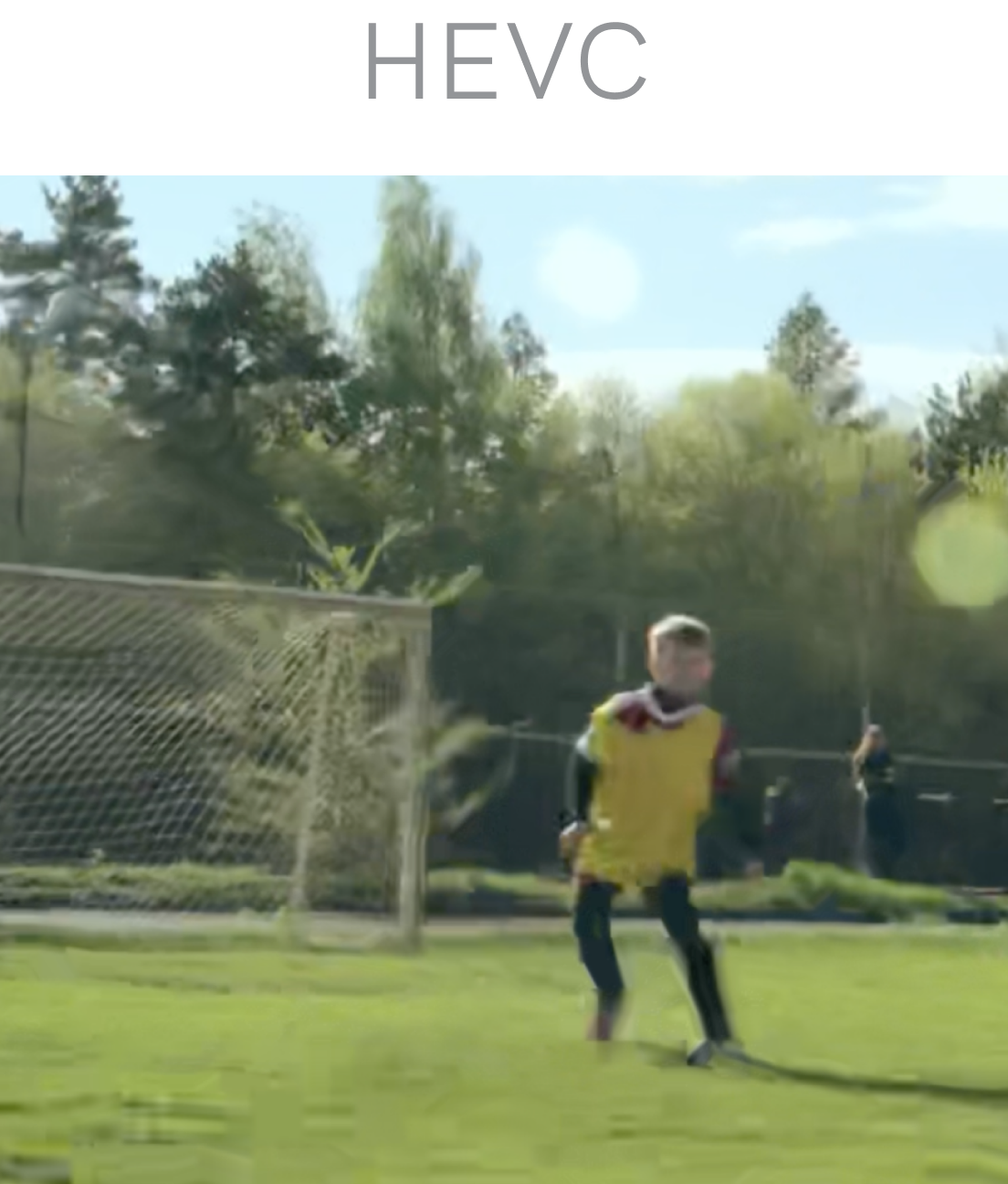 We had to crank up the bitrate to 21 Mbps to match the quality of the HEVC file. In this example, that's 3x the bitrate of the HEVC file. And what does more bitrate mean? More 'video bits' get uploaded per second, which means higher quality. But it also increases the file size and slows down export – which makes HEVC so appealing. You get the quality and the speed. Up next, we’ll use some sports footage with quick player movement.