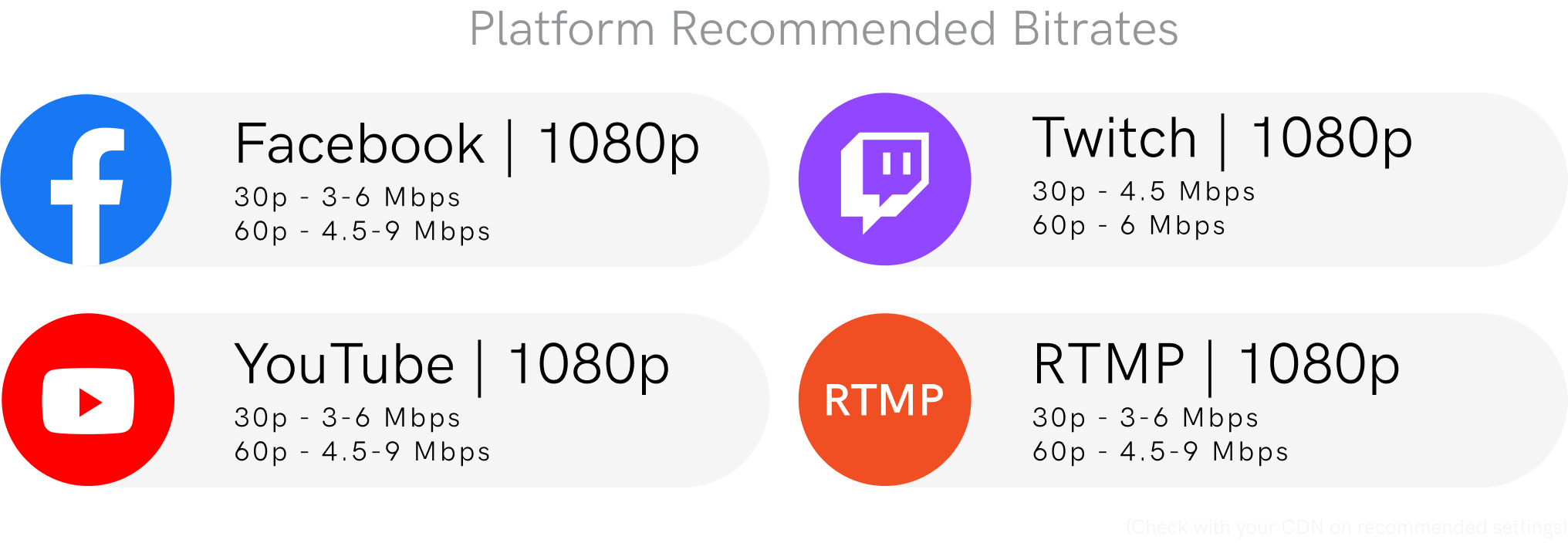Now that you know your network bandwidth’s recommended target bitrate, let’s look at popular streaming platform recommendations.