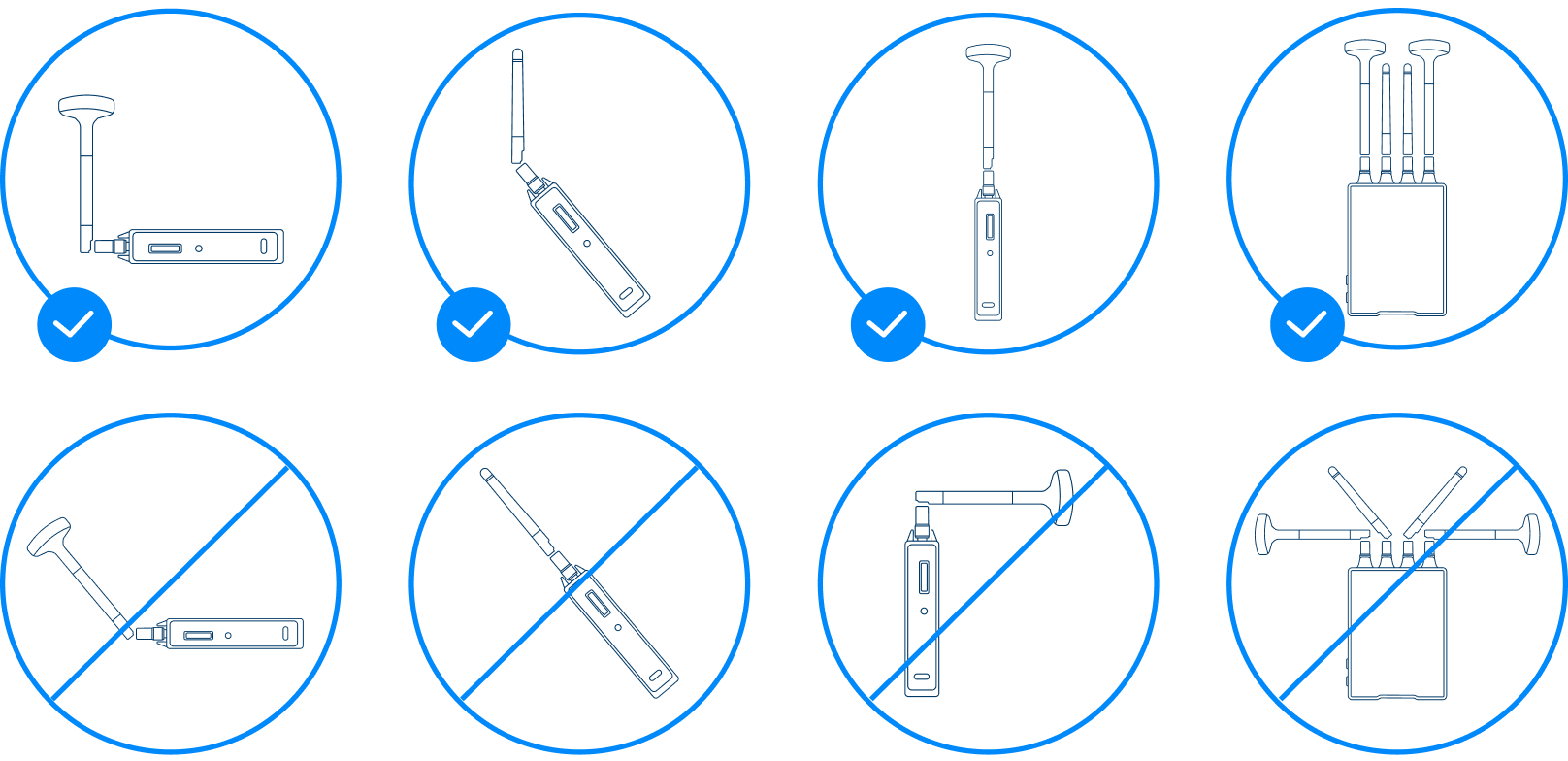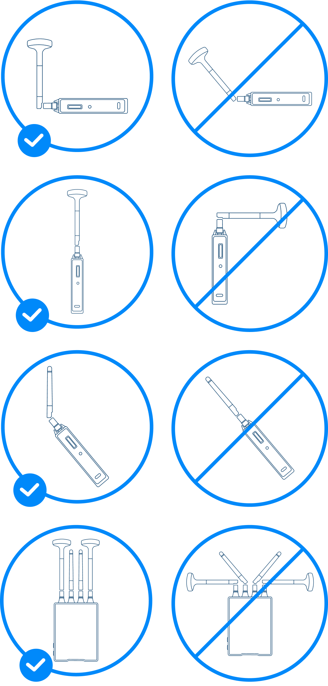 - Position antennas vertically (see image below)