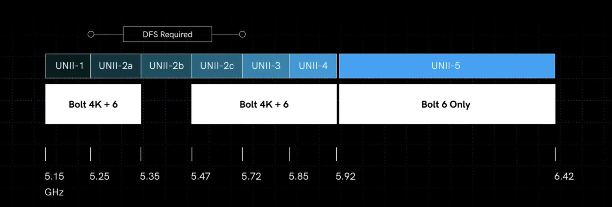 - Uses 5GHz and 6GHz U-NII channels
