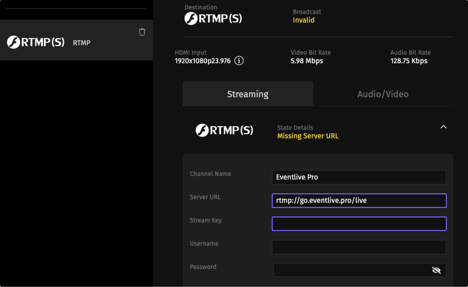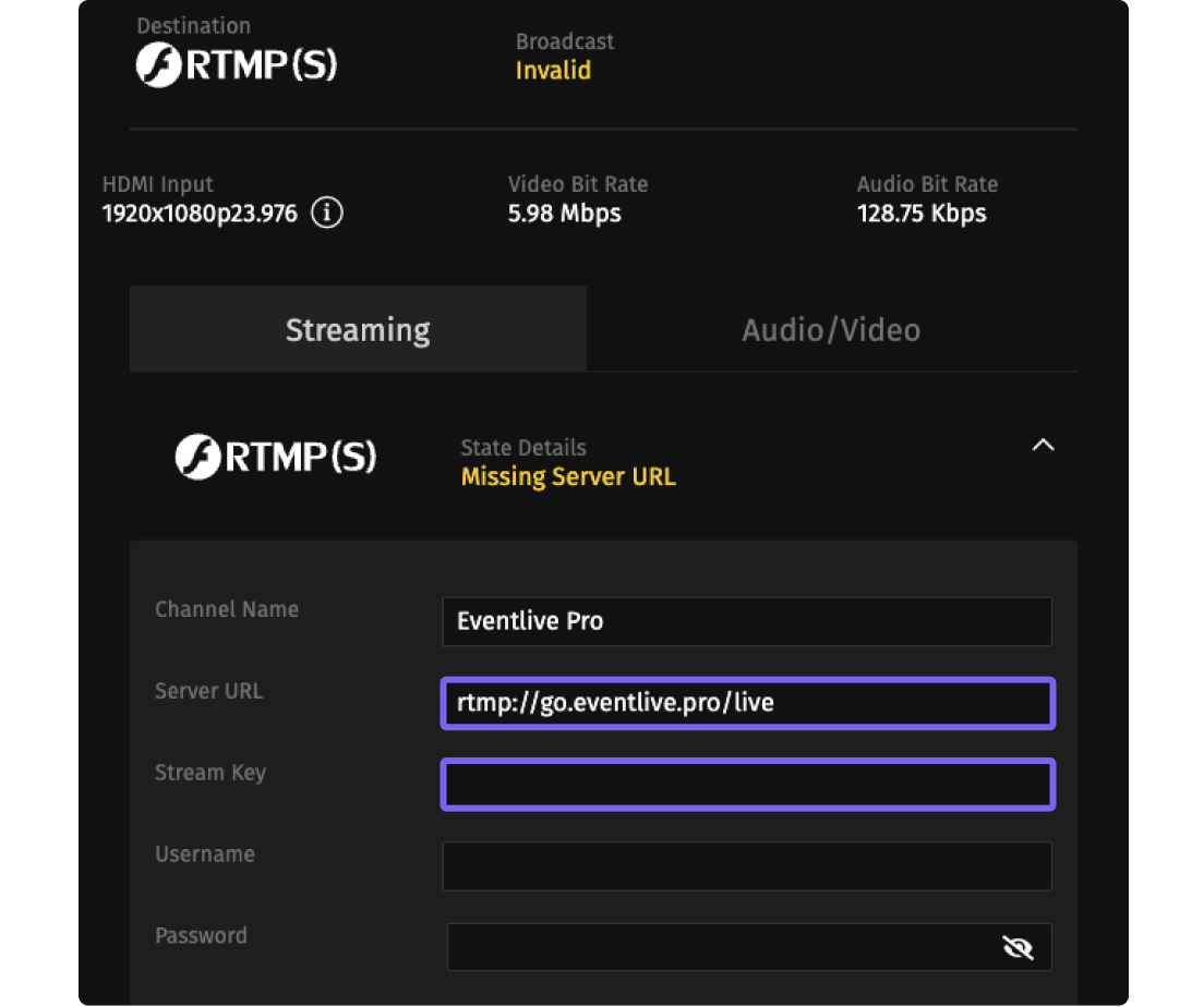 Create a new event on the Teradek Wave. Set the destination to RTMP (using RTMP quick stream for Wave). Then copy and paste the ingest URL and stream key into your encoder settings. We recommend using the WebUI for the Wave for easier copying and pasting.