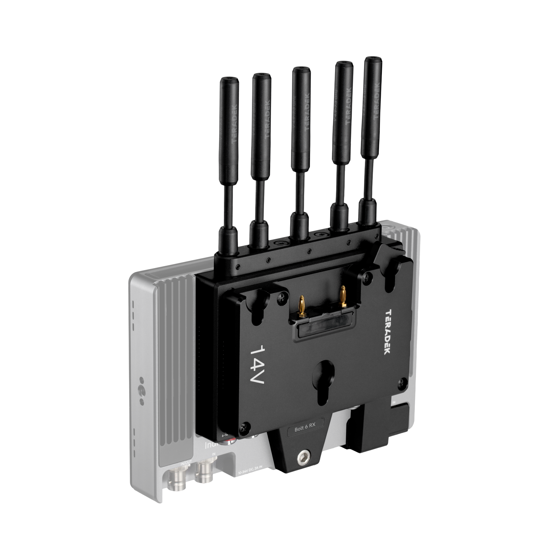 Bolt 6 Receiver Monitor Module offers two line-of-sight options: 750 ft., and 1500 ft. Additionally, you can upgrade your set to include Gold or V-Mount Battery plates.